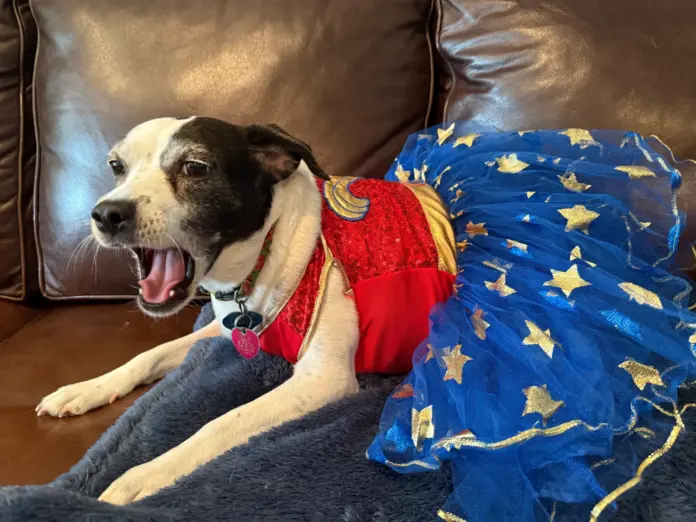Halo is the only dog in my life with no interest in treats or cues on a walk. She responds only to what I call “baby talk.” If I call her Princess or Sweetheart and make kissy sounds, she will relax. When I call her Wonder Woman, her tail raises, and she gets excited. Didn’t Wonder Woman have a Lasso of Truth she would wrap people up in and spin them like a top?